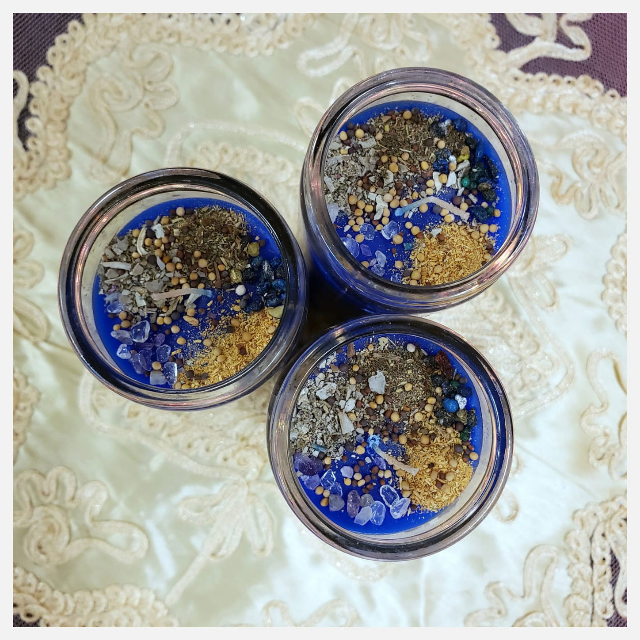 Nota: Puedes realizar un trabajo con velas de 3 semanas quemando una vela por semana o disponer las tres velas en forma de triángulo y quemarlas todas a la vez. Te recomendamos que empieces enseguida tu trabajo de quema de velas.