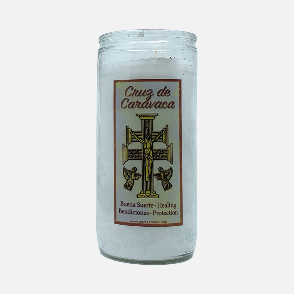 Cruz de Caravaca Jumbo Candle. Light a Cross of Caravaca jumbo candle for blessings, positive mental health, courage, protection, love, cleansing and good luck in your career or educational path. This ancient candle ritual will help you unlock your inner power. Spiritual candles are fixed with magical herbs, spiritual oils and healing crystals.