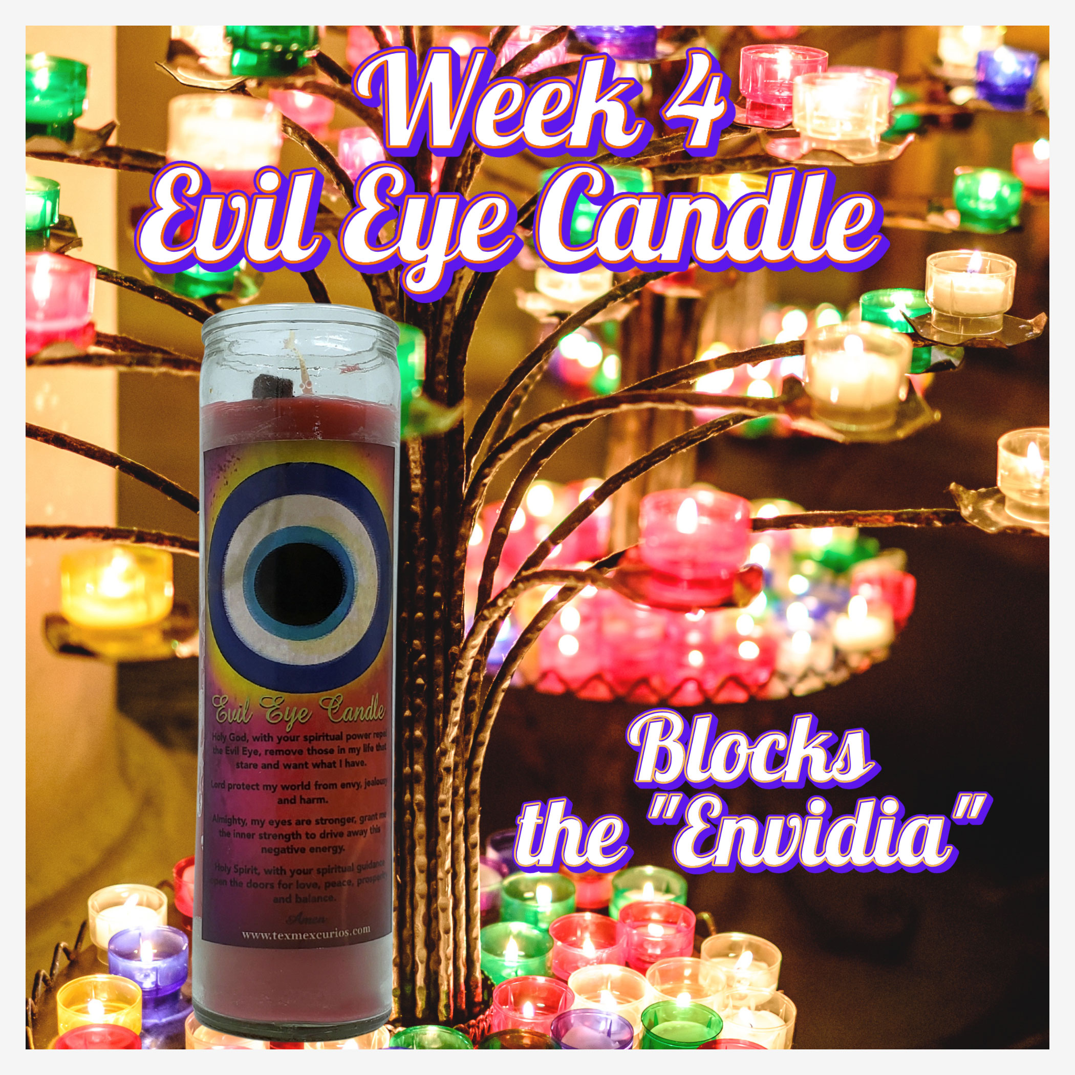 WEEK 4: We conclude your private candle altar session by lighting an Evil Eye candle. This candle ritual will block the evil eye of those people that desire harm to you and your family. We wrap up our prayer session with a petition that you and your family will be granted peace, prosperity and love.